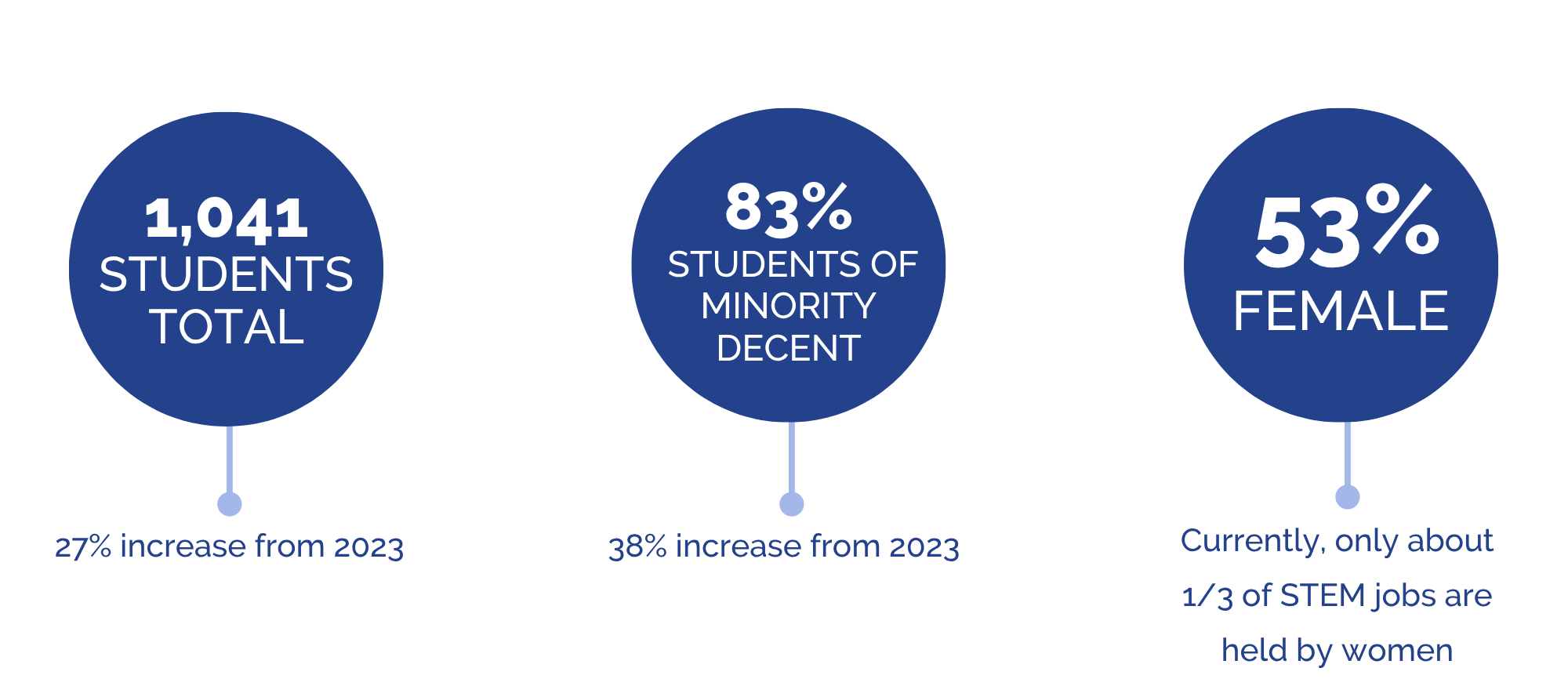 53 percent of participants were female, closing the gap in fields where women currently hold only one-third of STEM jobs nationwide